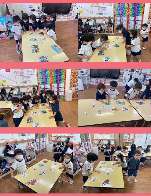 We started our unit with some provocations. I spread out a couple of things on the floor, and they notice the change in the classroom. One student reacted right away by trying to clean up and putting them back where they belonged. After clearing up the mess, the students then organized their backpacks.